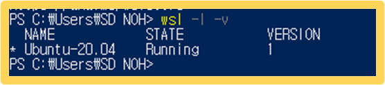 wsl -l : 현재 설치된 리눅스 배포판 명령어 확인 -v: 버전도 확인