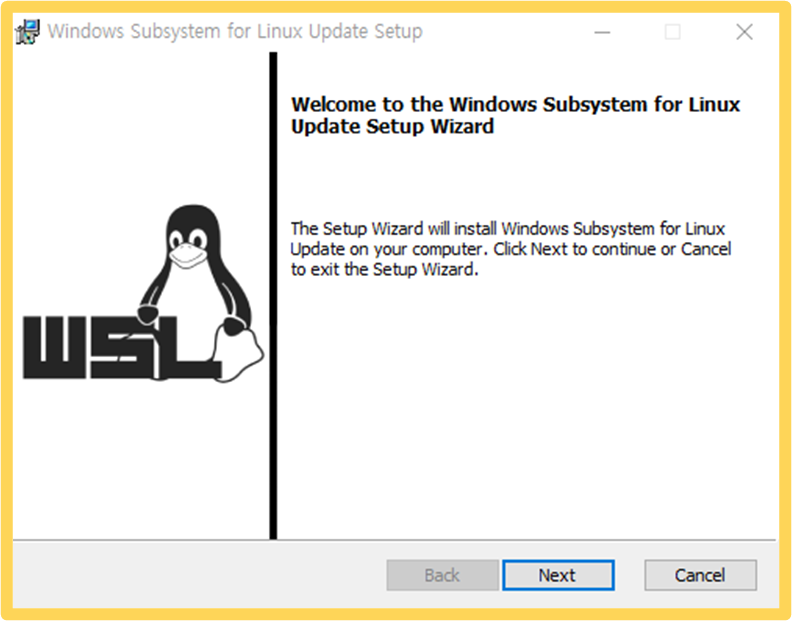 WSL2 리눅스 커널 업데이트를 설치해야 합니다. 아래 링크를 클릭하면, 설치가 진행됩니다.