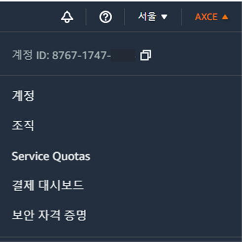 아래 명령어는 정상적으로 입력 되었는지를 확인하는 명령어 입니다. AWS 콘솔에서 계정 ID를 확인해보시면 출력된 UserID와 동일한 것을 알 수 있습니다.