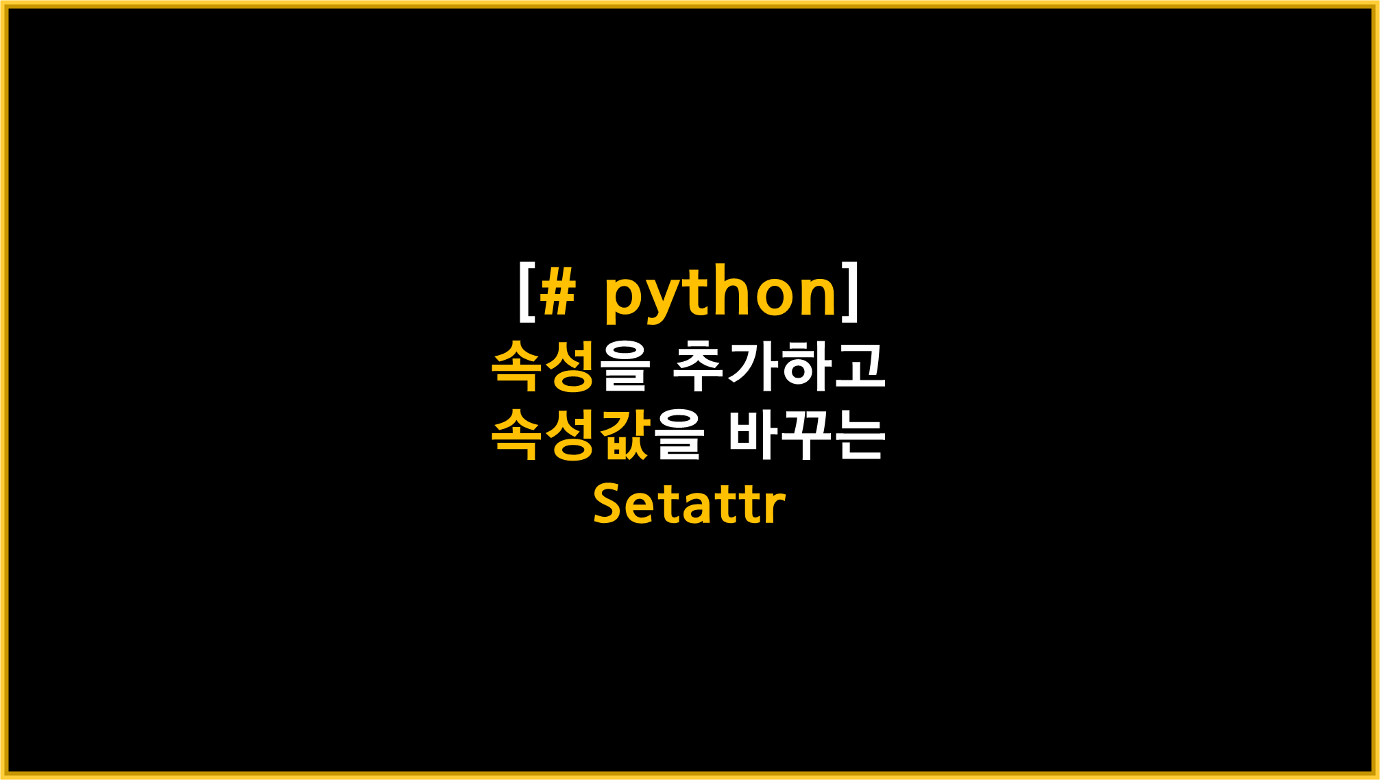 이와 같이 setattr은 속성값의 변경이나 속성의 추가 입력이 가능하도록 해주는 메소드입니다.