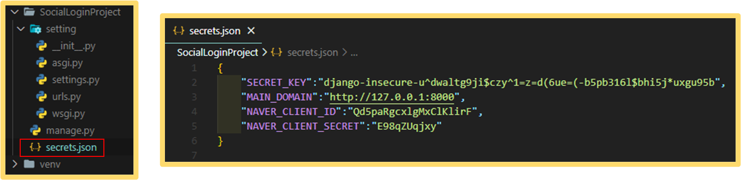 2) secrets.json 파일 분리