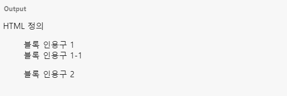 <blockquote>블록 인용구 1 <br> 블록 인용구 1-1 </blockquote>