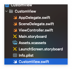 저는 boxView로 이름을 만들었습니다. 다음으로 커스텀 뷰를 정의할 파일인 CustomView.swift 파일을 만들어줍니다.