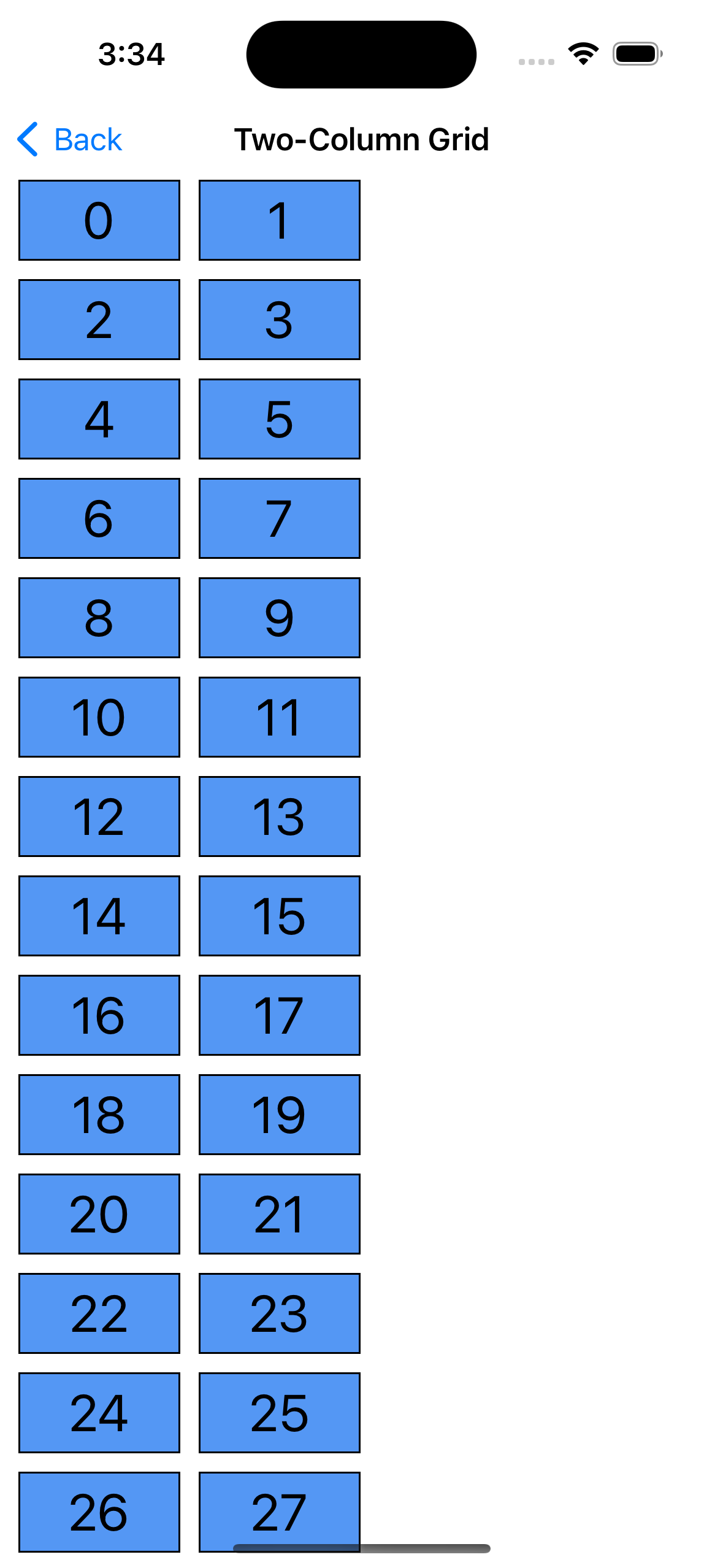 해당 예시는 Gird 형태의 Layout을 보여주고 있다. 가로로는 아이템이 5개씩 배치가 되어 있고, 세로로는 스크롤이 가능한 배치이다. 어떻게 하면 위와 같이 설정할 수 있을까? 코드를 한번 살펴보도록 하자.