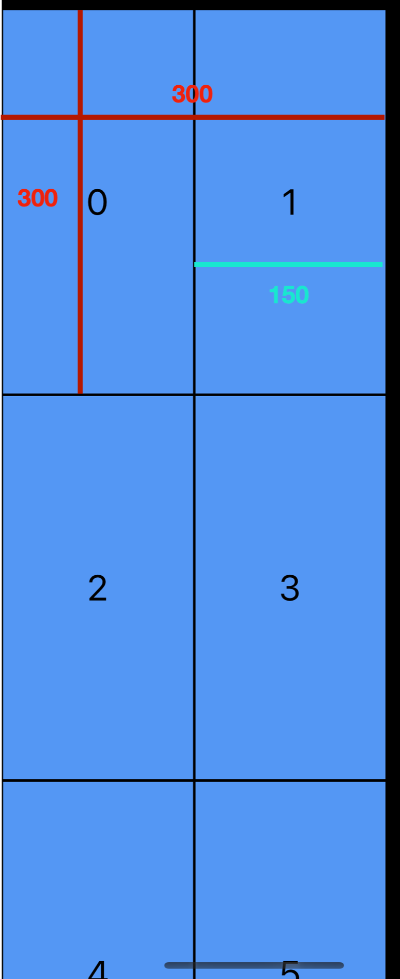 현재 그룹과 아이템의 사이즈는 300 * 300 으로 같은 크기입니다. 즉 현재 그룹에는 한 개의 아이템이 속해있는 셈입니다. 그럼 여기서 아이템의 너비를 절반인 150으로 줄이면 어떻게 변할까요?
