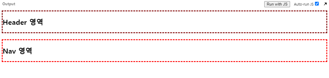 <div id="header" style="border: 3px dashed maroon"><h2>Header 영역</h2></div>