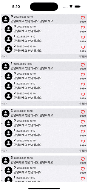즉, Section Header가 원 댓글을 의미하고 Cell Item들은 각각 대댓글을 의미합니다. 그리고 Section은 하나의 댓글입니다.