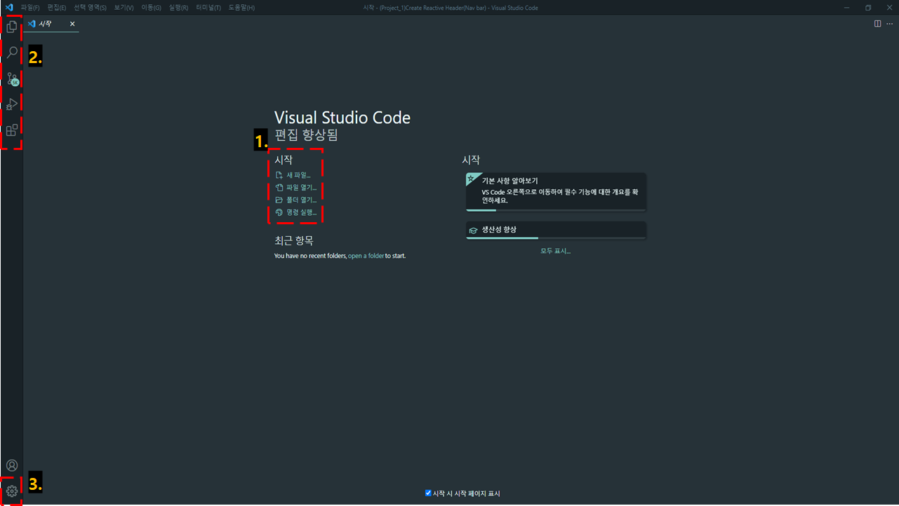 3번의 아이콘은 설정 아이콘으로 visual studio를 사용하면서 사용자에 맞게 설정을 변경할 수 있습니다.