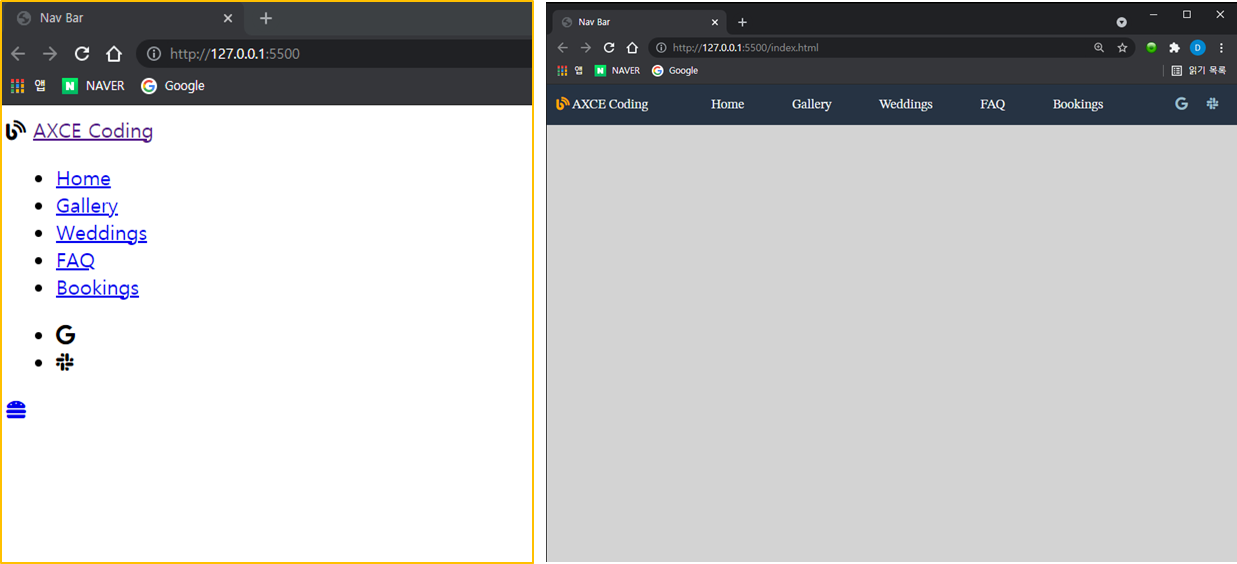 우리는 이제 CSS를 활용해 왼쪽을 오른쪽의 모습으로 바꾸도록 하겠습니다.