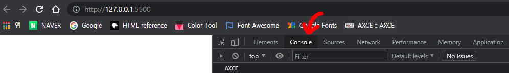 그 다음 윈도우 창에서 [ f12 ] or [ ctrl + shift + i ]를 눌러 개발자 도구를 엽니다. 상단에 Console 을 눌러줍니다.