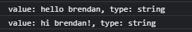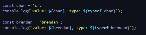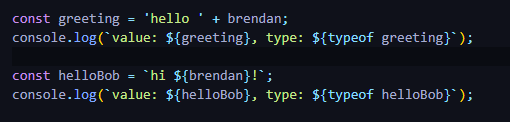 string(문자열)은 한 글자 혹은 여러 글자로 이루어져 있습니다. 아래 사진과 같이 문자열(string) + 문자열(string)의 조합이나 문자열(string) + 변수명(variable name)으로 조합도 가능합니다. 뿐만 아니라 문자열 포맷을 그대로 가지고 ${변수명} 을 이용해 문자열을 표현할 수 있습니다.