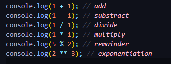 # +, -, /, *, **, %, ++, -- 등등
