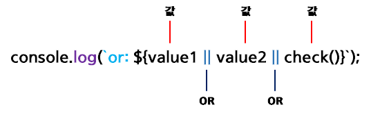 위의 식은 value1, value2, check() 중에 true가 하나라도 있는 경우 true를 반환하는 식입니다. 앞에서부터 순차적으로 value 값을 확인하기 때문에 value1이 true인 경우 뒤에 있는 value2와 check() 값은 확인하지 않습니다.