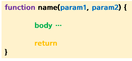 - 먼저 function을 이용해 함수임을 선언하고 함수의 이름(name 부분)을 정의합니다.