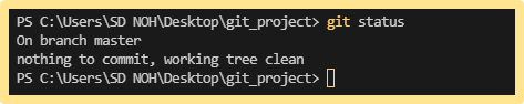 이후 git status로 확인을 해보면 아래와 같이 작업 구역에 commit 할 내용이 없다는 것을 보여줍니다.