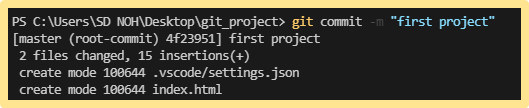 add 명령어로 파일 혹은 폴더들의 변경 사항을 확인하고 이를 버전으로 생성하기 위해 다음 단계인 commit 명령어를 실행합니다.