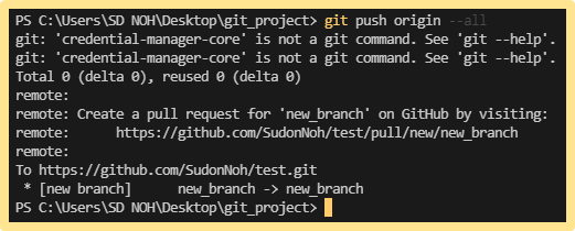 위의 코드를 통해 모든 branch를 원격저장소에 업로드할 수 있습니다.