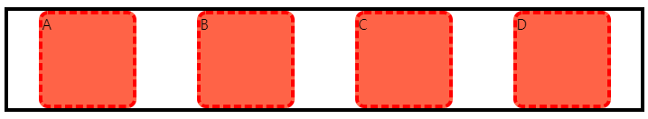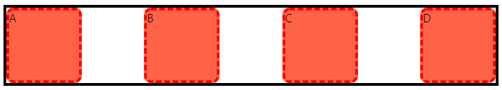 flex로 지적된 박스 내부의 아이템들 양 옆에 margin을 부여한 듯하게 일정한 간격으로 유지됩니다.