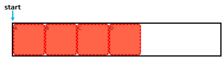 flex로 지정된 박스의 주축이 되는 부분의 시작점에서부터 item을 정렬합니다.