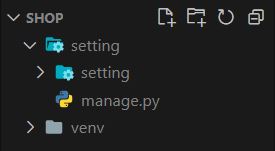 - 새로 만든 Project의 최상위 폴더 이름은 setting입니다. 그 아래 setting 폴더가 하나 더 있습니다. 처음 project를 생성할 때 최상위 폴더와 내부 처음 생성되는 폴더의 이름은 같은 이름으로 생성됩니다. 처음 Project를 생성할 때 setting으로 설치한 이유가 여기에 있습니다.